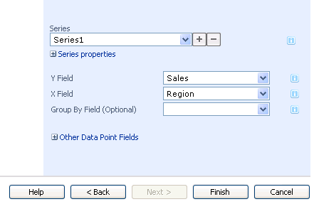 In step 4 of the wizard, choose the Sales column for the y-axis of the Column chart, and the Region column, which displays the names of the chosen country's regions, for the x-axis. Click Finish to complete the task.