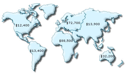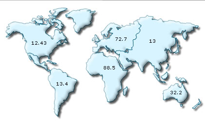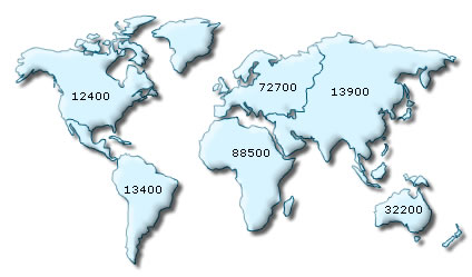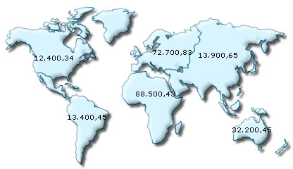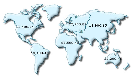 By default, FusionMaps uses . (dot) as decimal separator and , (comma) as thousand separator character. However, you can customize this character depending on your requirements. To do so, use the decimalSeparator and thousandSeparator attribute. For example, let's set our thousands separator as dot and decimal separator as comma. To do so, you'll have to use the following xml: <map ... decimalSeparator=',' thousandSeparator='.' > Shown below is the output. |
